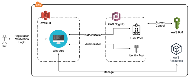 This blog post will provide a detailed walk-through on configuring an application to access AWS resources using AWS SDK with authenticated users by configuring an identity pool with an identity provider, and creating a simple static HTML web app for user sign up and sign in. After authentication, the app will list the objects of a specified S3 bucket to showcase the authorized access the logged in user has received.