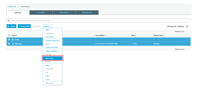 4.In order to allow public access, Select all the files, click on “Actions” and select “Make public” as below.