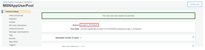 4.Copy the generated “Pool Id” from “General settings” section as below.
