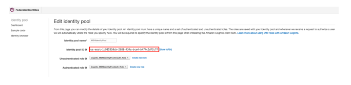 5.After creation go to the created Identity Pool dashboard and click “Edit Identity Pool” and copy the “Identity pool ID” as displayed below.