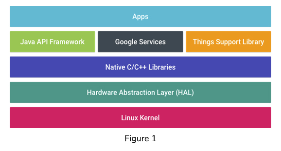 Android Things, which is formally known as Project Brillo, provides a rich platform to develop IoT solutions over a prototype or a system onboard a hardware platform, which is based on an existing Android stack. It provides an OS built on the power, ease, and security of Android and certified hardware to get you from prototype to production quickly. Because it's based on Android, you get access to Android APIs, Google services, and Android developer tools (see Figure 1).