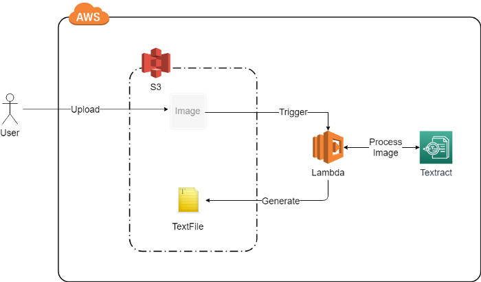 This section will focus on text extraction using images (JPEG/PNG). In the first example, a Base64 converted image will be directly used with AWS SDK to extract text. In the second example, an S3 bucket triggered Lambda will be used to automatically extract text when images are uploaded to the S3 bucket and write each result to a text file in the S3 bucket.