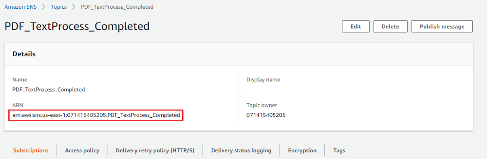 The API method “StartDocumentTextDetection” is asynchronous. This method starts a text extraction process and returns the “JobId”. Once the text extraction process is completed, it will trigger a notification to the AWS Simple Notification Service. Follow the below steps to create an AWS SNS.