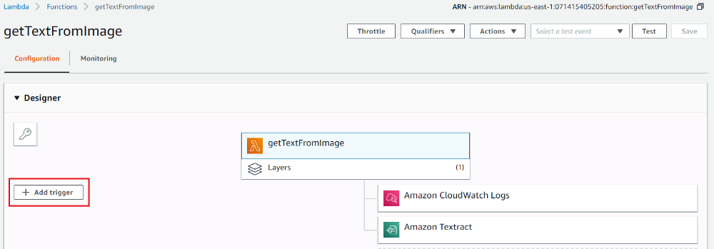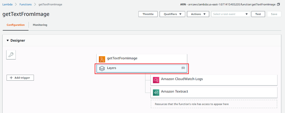 6.Please follow the steps in section “1.1.3” and add the “boto3-layer” to the “getTextFromS3Image” Lambda.