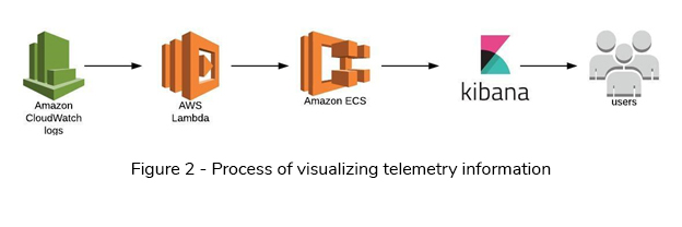 The AWS Cloudwatch collects logs from different AWS services in the EDL platform. Lambda is configured to collect data from CloudWatch logs and to send/index to the AWS Elasticsearch service. Kibana is used to visualize and search the telemetry data, which are indexed in Elasticsearch to gain operational insights (See Figure 2).